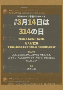 DJ / VJ / みよ、延田はるひら、Zarnaq、岸和田市民、みそのじ、A.Q.Johnny、ケイ(神奈川)、enzo(愛知)、林人生、314